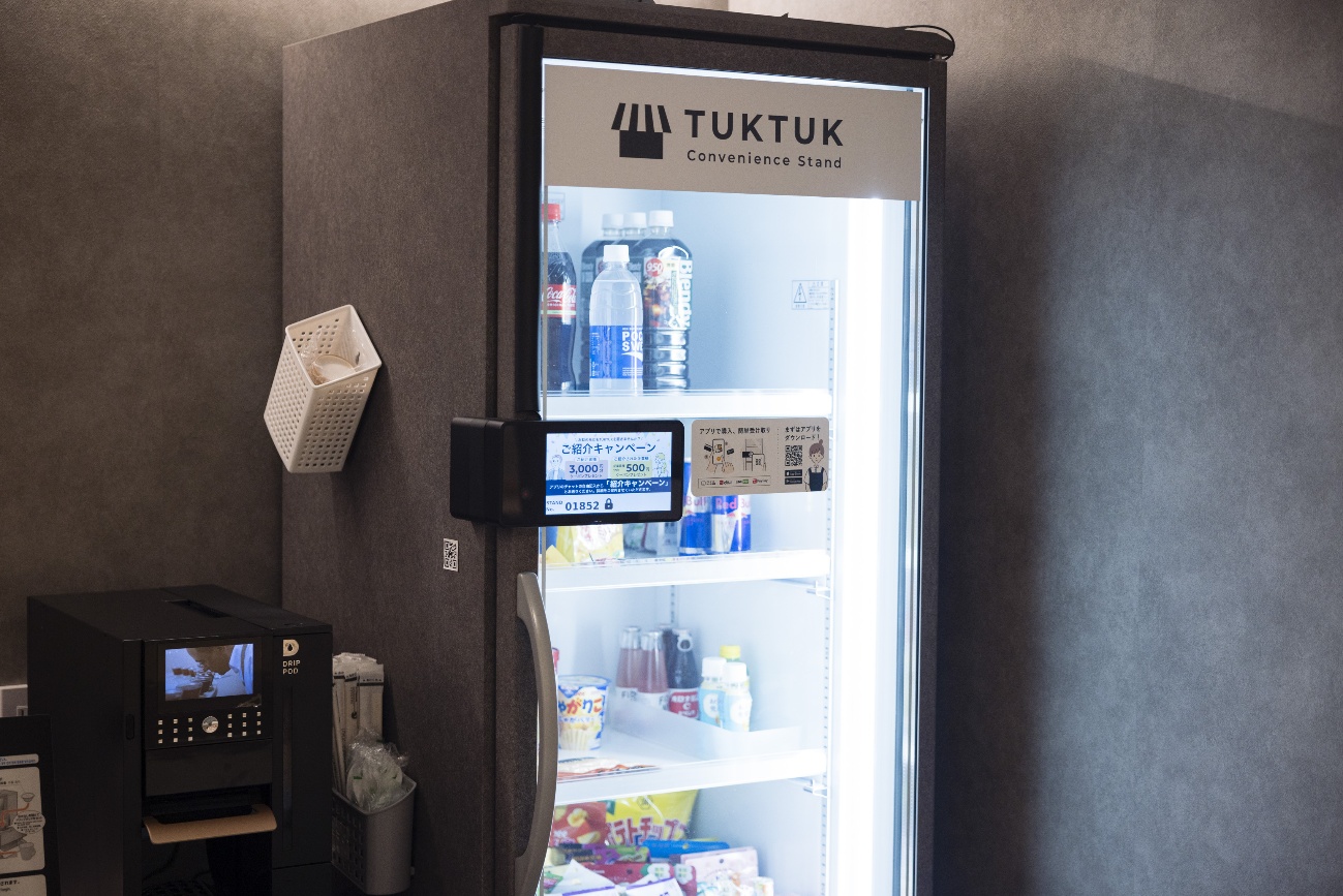 ブックラウンジには無人コンビニエンススタンド「TUK TUK」もあり、雨の日や買い忘れた物があるときも建物の外に出なくても調達できて便利。1Fのラウンジしかり、こんなふうに共用スペースが充実していると、自分の部屋以外にも気軽に息抜きできるリビングがもうひとつできたようでうれしいな。