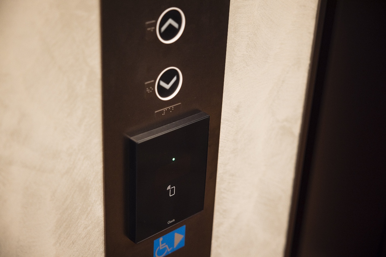 エレベーターはタッチキーで稼働。セキュリティもばっちり。
