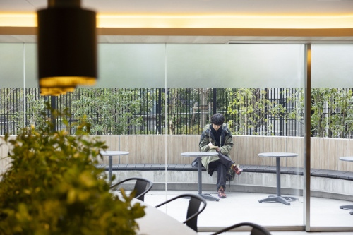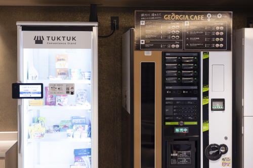 コーヒーの販売機や無人コンビニエンススタンド「TUKTUK」もあって、気分転換したいときには、外の風にあたりながら休憩できる。