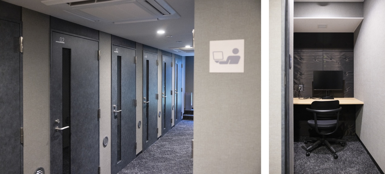 と、ここまででもう充分だと思っていたら、さらに1Fの奥には、個室で集中して作業ができる「プライベートラボ」が!その数10室。