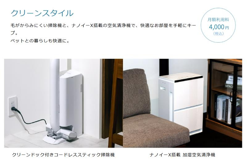 ひとつ目のパッケージは、お部屋を清潔に保つために役立つ「クリーンスタイル」。クリーンドック付きコードレススティック掃除機と、ナノイーX搭載 加湿空気清浄機のセットだ。