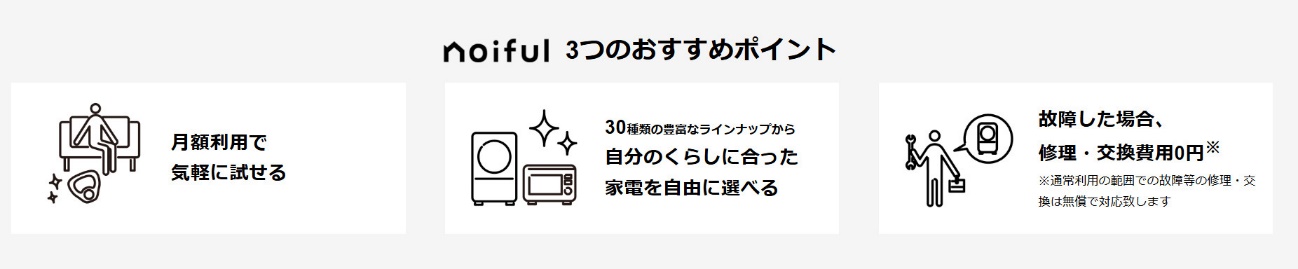 noifulは、賃貸と家電がセットで利用できる(noifulが導入されている賃貸物件でのみ使用できる)サービスです。